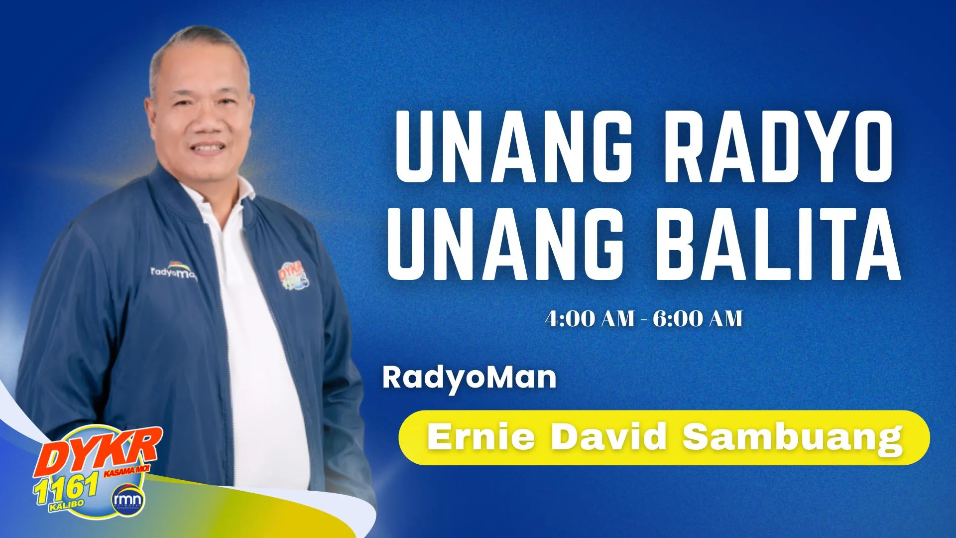 DYKR 1161 RMN Kalibo – Ang Radyo Nga Masaligan sa Aklan. RMN Kalibo delivers reliable news, strong public affairs, and heartfelt dramas in Akeanon, Hiligaynon, and Filipino, keeping Aklanons informed with stories told tapat, patas, kag may malasakit.