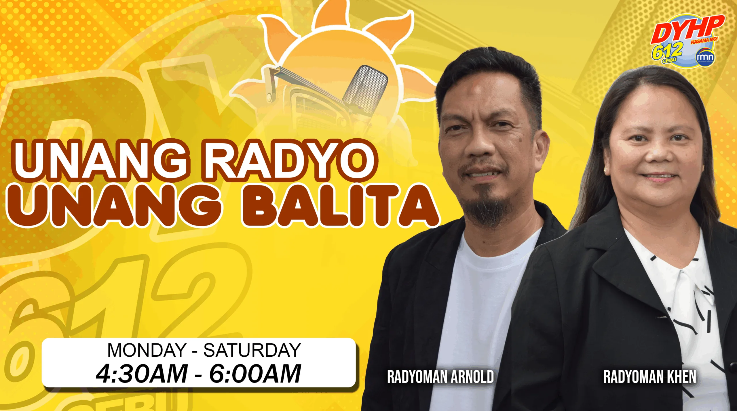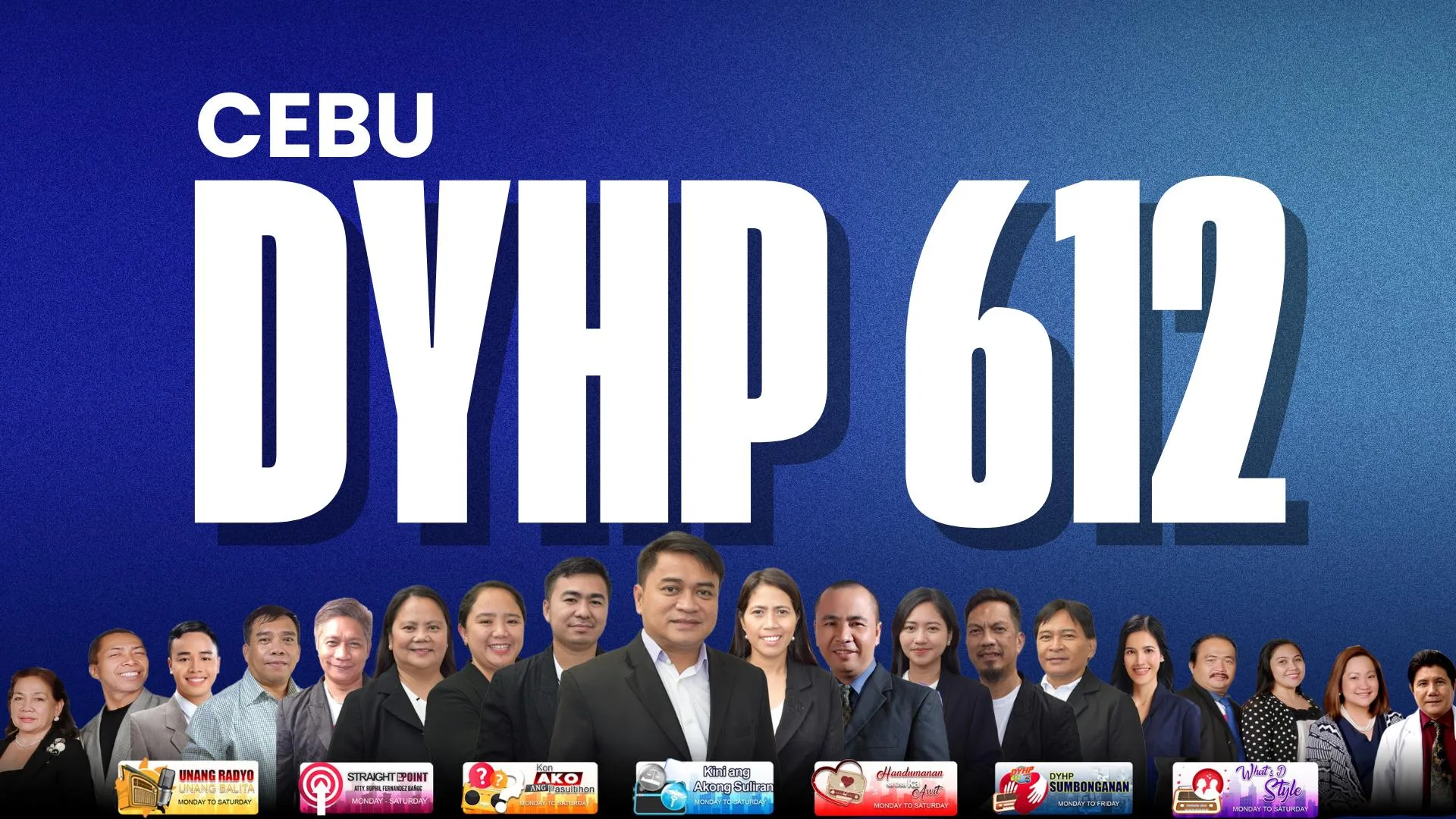 DYHP 612 RMN Cebu – The Number One AM Station in Central Visayas. The “Hari sa Takna sa Kabuntagon,” DYHP delivers credible news, fearless public affairs, and top-rated dramas — the trusted voice of the Cebuano people.